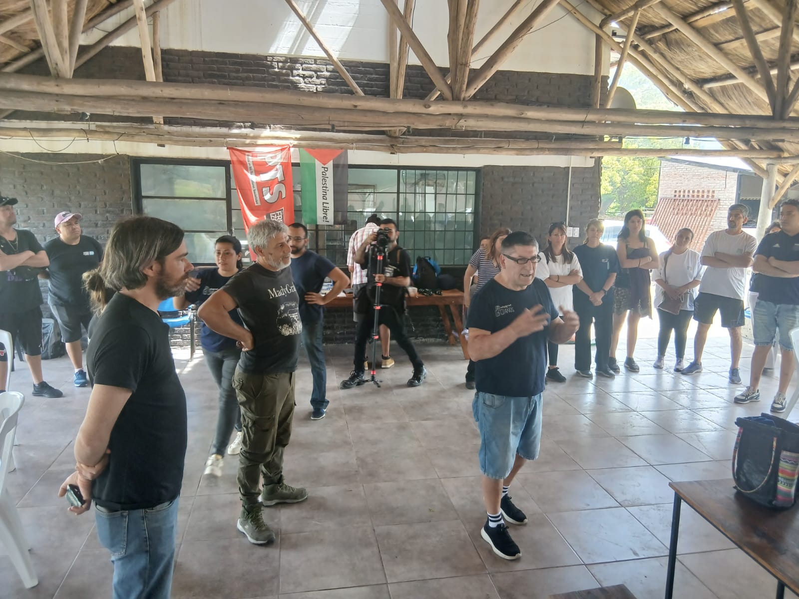 La actividad se desarrolló en el marco de los últimos días de campaña antes de las elecciones del 26 de octubre y reunió a alrededor de un centenar de personas, entre obreros, cooperativistas y referentes de la izquierda. Tras la entrevista concedida a medios locales, el dirigente recorrió las instalaciones de la planta gráfica, gestionada por sus empleados desde hace más de diez años, luego de la partida de los propietarios de la antigua Donnelley.